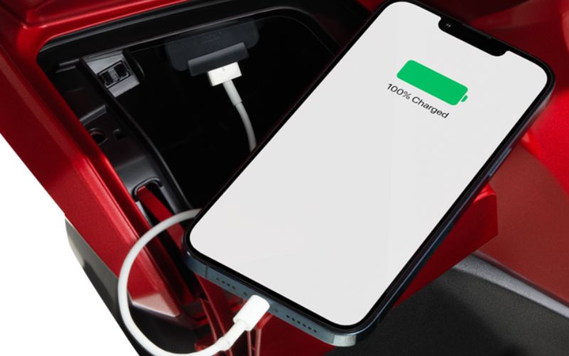 - Cổng sạc Type A tiện ích: Hộc chứa đồ phía trước được trang bị cổng sạc Type A, giúp duy trì liên lạc mà không lo mất nguồn điện, hỗ trợ mọi hành trình thêm thuận lợi.